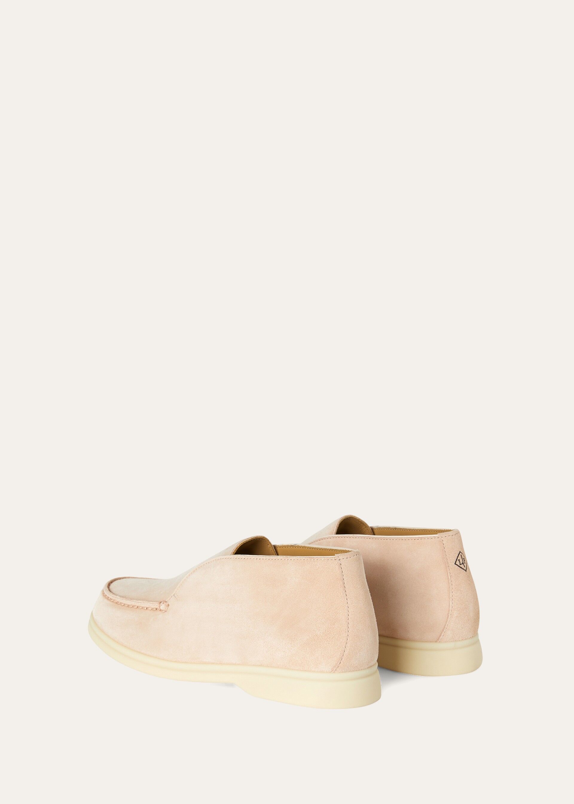 Boys’ version of Loro Piana’s classic men’s ankle boot in soft suede. The patented fastening features elastic concealed under the tongue, making it comfortable and easy to slip on. The sole is in white latex, the hallmark of Loro Piana footwear.